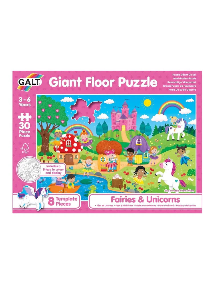 Step into a sparkling world of imagination with the Galt Giant Floor Puzzle - Fairies & Unicorns! This beautifully illustrated 30-piece puzzle brings a whimsical fairyland to life, filled with fluttering fairies, friendly unicorns, and enchanting details waiting to be discovered.