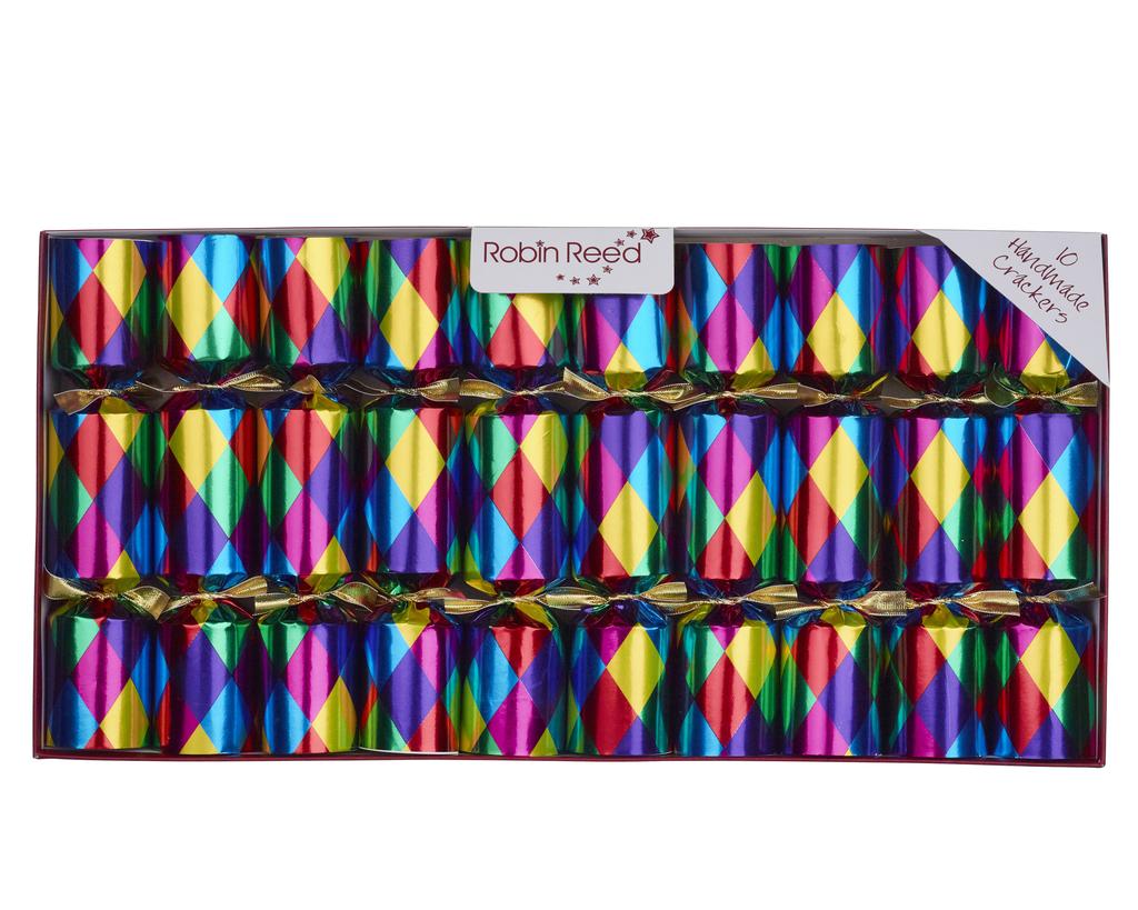 Celebrate the holidays in traditional English style with Robin Reed's Harlequin Party Christmas Crackers.