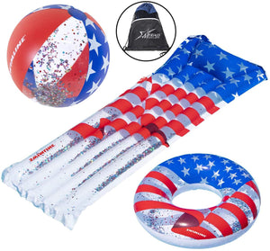 Swimline Americana Inflatable Pool Toys: 22" Glitter Ball 72" Floating Mattress 36" Donut Ring & Bag  - Regular price