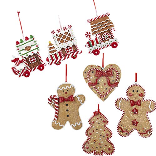 Kurt Adler Christmas Ornaments Set of 4: 2 Gingerbread Men, Tree and Heart