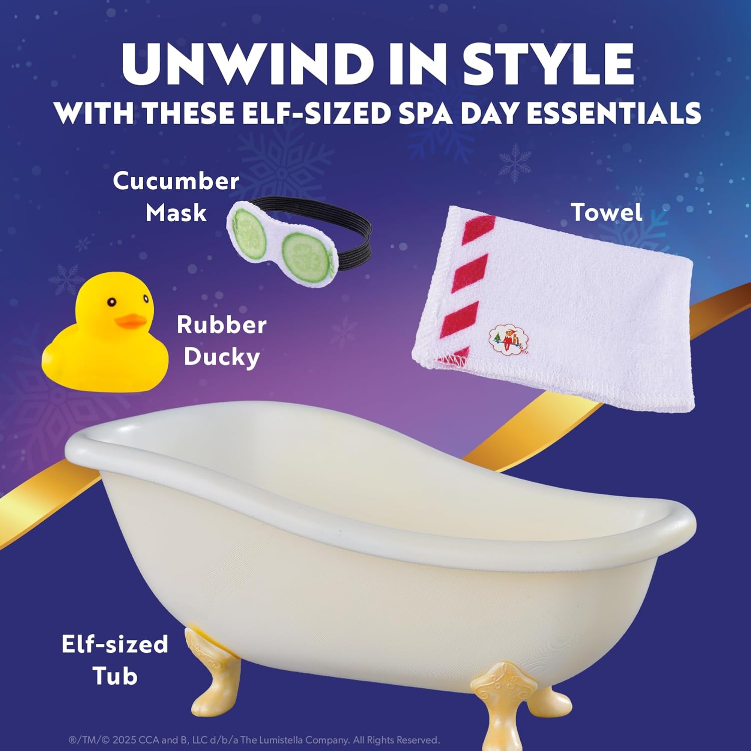Even Scout Elves need a little "me time." The Elf on the Shelf® Spa Day Props Kit gives your elf everything they need to relax after busy nights at the North Pole.